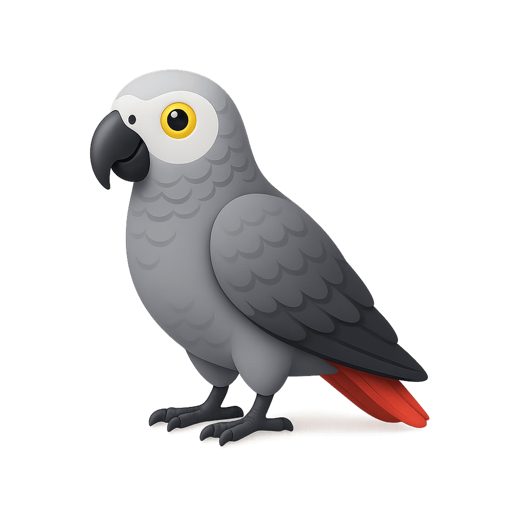 The African Grey Parrot is a highly intelligent and social bird native to the rainforests of West and Central Africa. Known for its exceptional ability to mimic human speech and sounds, it is a popular companion animal and is recognized for its striking grey feathers and red tail.