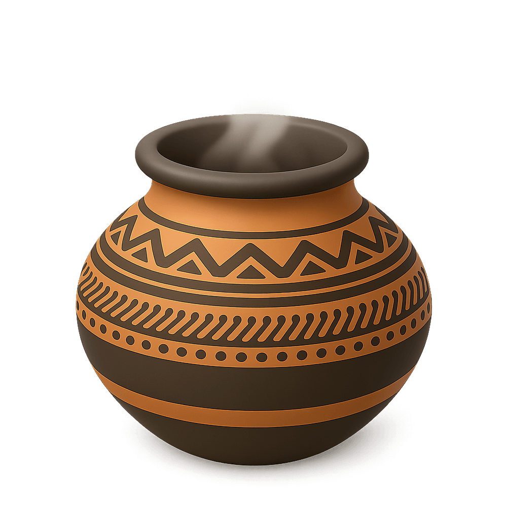 A handcrafted clay vessel traditionally used across various African cultures for cooking, storage, and ceremonial purposes. African pots often feature unique designs and patterns that reflect the heritage and artistry of their makers.