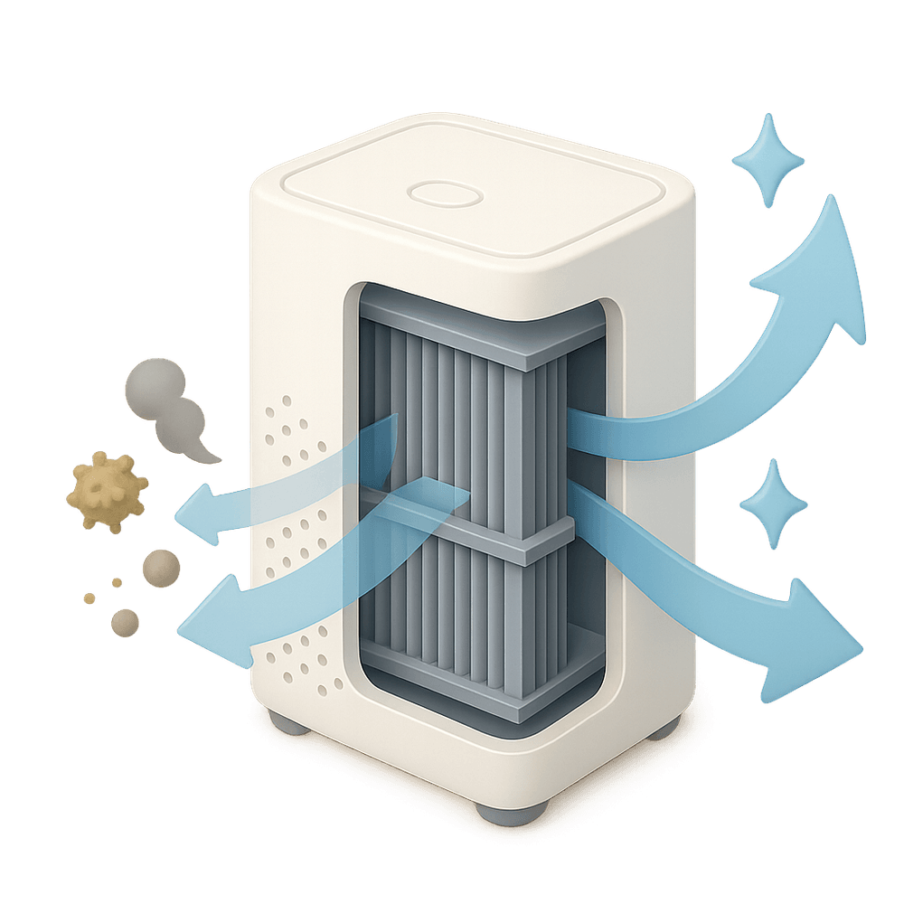 A device designed to remove contaminants and improve air quality in indoor spaces, promoting a healthier living environment.