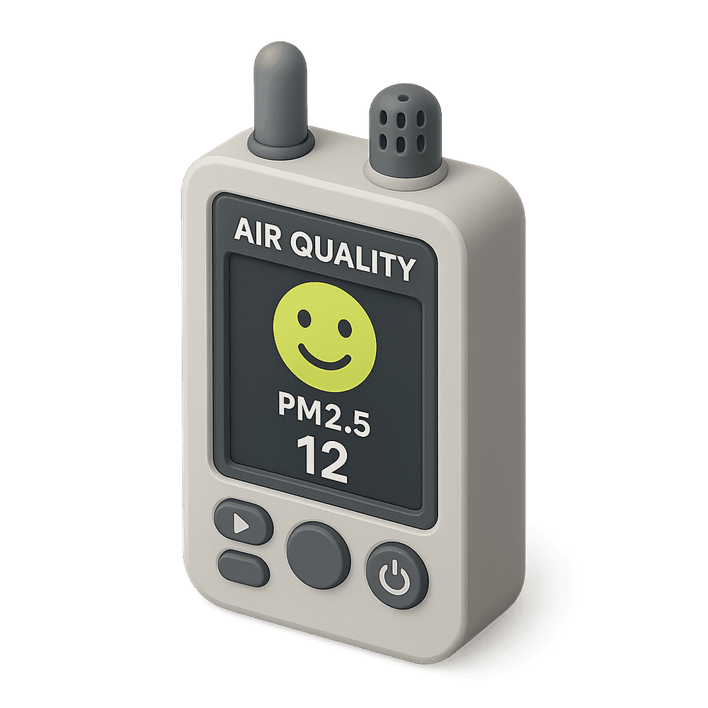 A device that measures and monitors the quality of air in workplaces or industrial environments, detecting pollutants and ensuring a safe atmosphere for workers.