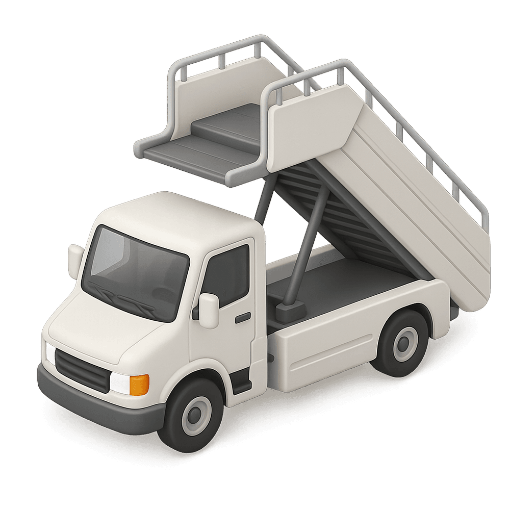 A specialized vehicle equipped with mobile stairs, used at airports to allow passengers to board and disembark from aircraft when jet bridges are not available.