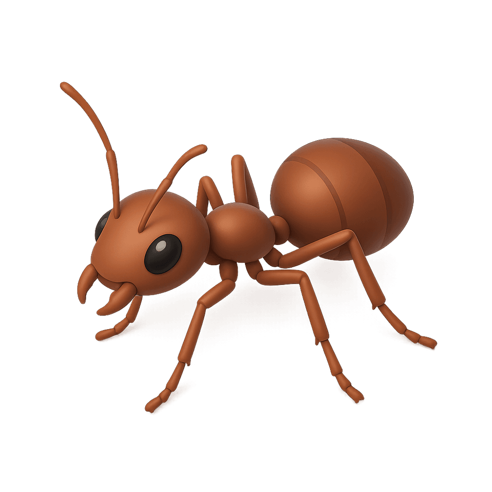 A small, social insect known for living in colonies and building complex underground nests. Ants are found worldwide and play important roles in ecosystems as scavengers and soil aerators.