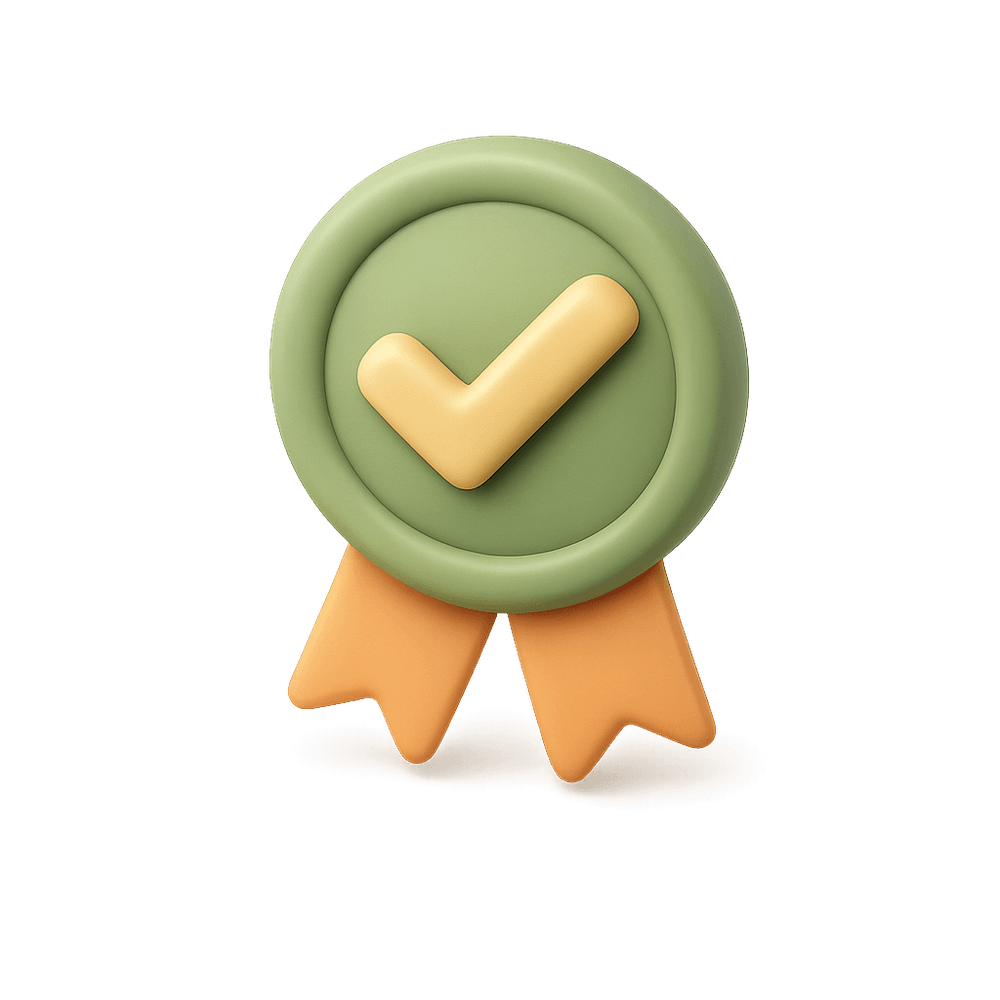 A symbol or icon indicating that something has been officially accepted, verified, or meets required standards. Commonly used in digital interfaces to show approval, confirmation, or successful completion of a task.