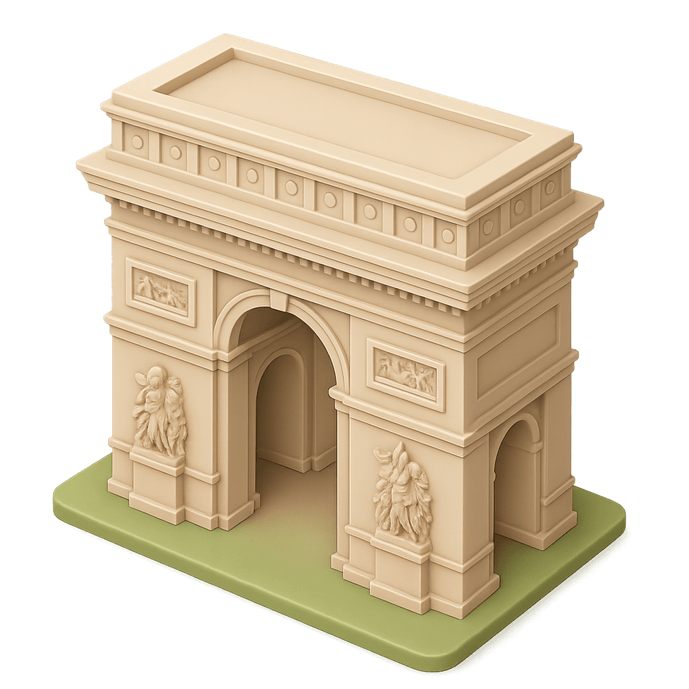 The Arc de Triomphe is a monumental triumphal arch in Paris, France, honoring those who fought and died for France in the French Revolutionary and Napoleonic Wars. It is one of the most famous landmarks in Paris and a symbol of national pride.