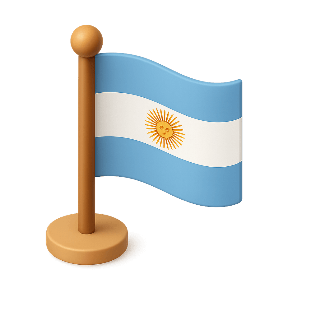 The national flag of Argentina, featuring three horizontal bands of light blue and white with a golden Sun of May in the center. It symbolizes the country's independence and identity.