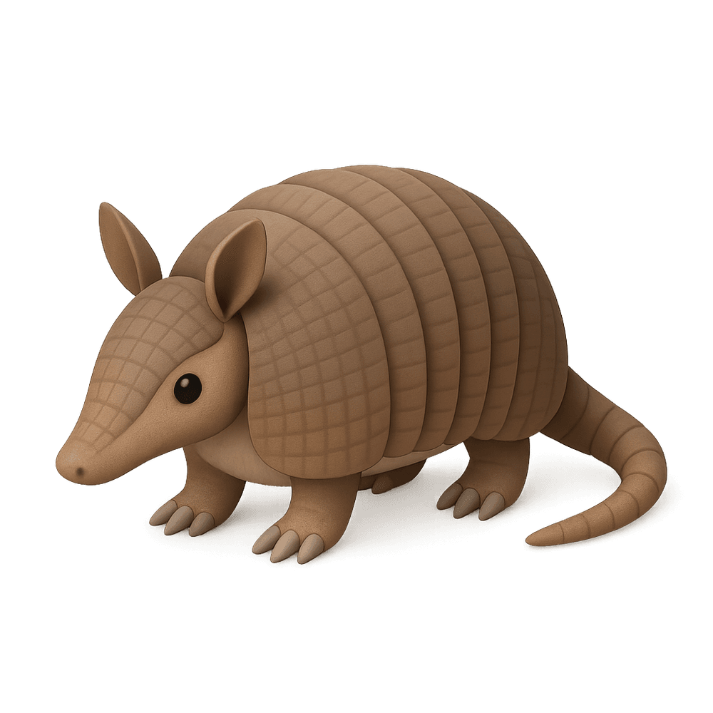 A small, armored mammal known for its distinctive bony plates covering its back, head, legs, and tail. Armadillos are primarily found in the Americas and are recognized for their ability to roll into a ball for protection.