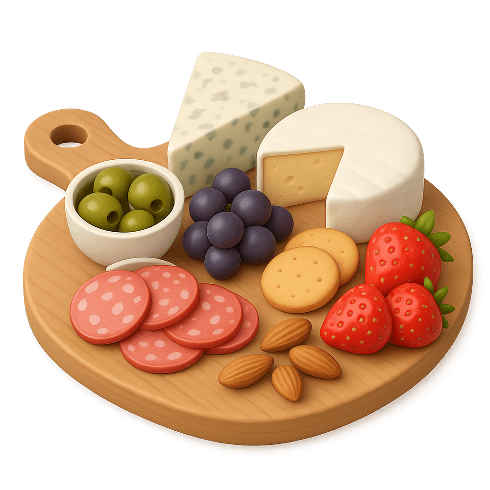 A curated selection of gourmet cheeses, often accompanied by fruits, nuts, and crackers, beautifully arranged for sharing and entertaining. Perfect for social gatherings and special occasions.