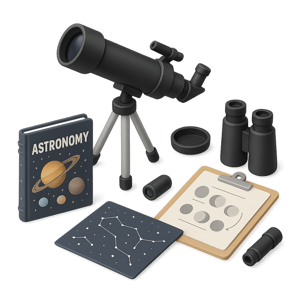 A beginner-friendly set for stargazing and exploring the night sky, typically including a compact telescope, star charts, and a guidebook. Perfect for those interested in learning about constellations, planets, and celestial events from their backyard or local park.