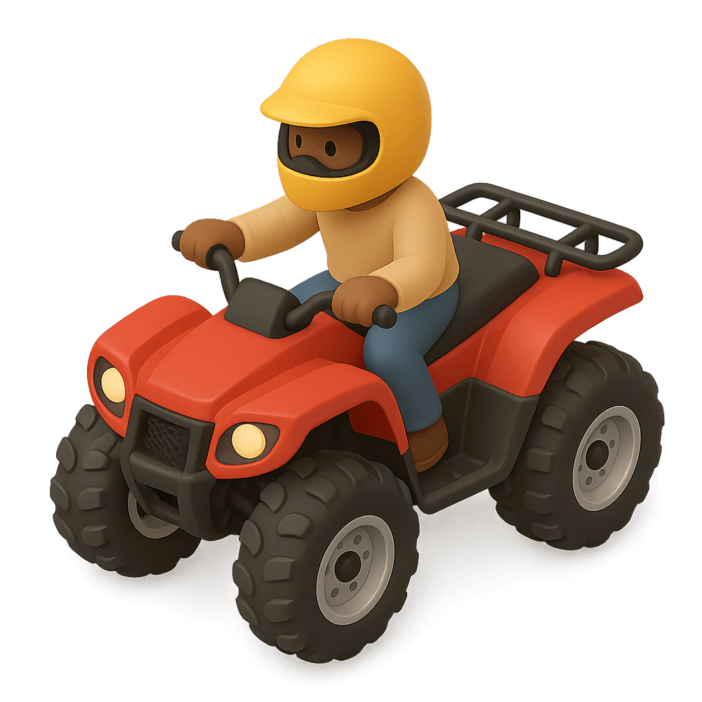 An ATV (All-Terrain Vehicle) is a motorized off-road vehicle designed for a single rider or passengers, capable of traversing rough terrain such as trails, fields, and hills. Commonly used for recreation, work, and adventure in outdoor environments.