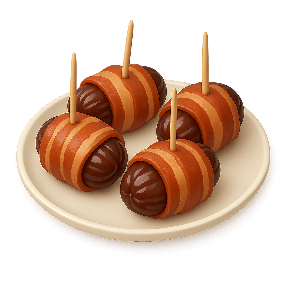 Bacon-Wrapped Dates are a popular appetizer made by wrapping sweet dates in savory bacon and baking them until crispy. This bite-sized treat combines sweet and salty flavors, often served at parties or as a starter in restaurants.