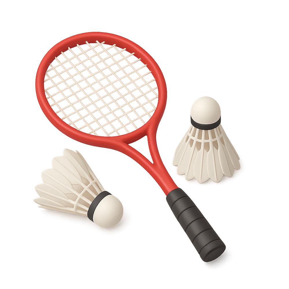 A set consisting of a badminton racket and shuttlecocks, essential equipment for playing the sport of badminton. Used for recreational or competitive play, suitable for indoor or outdoor courts.