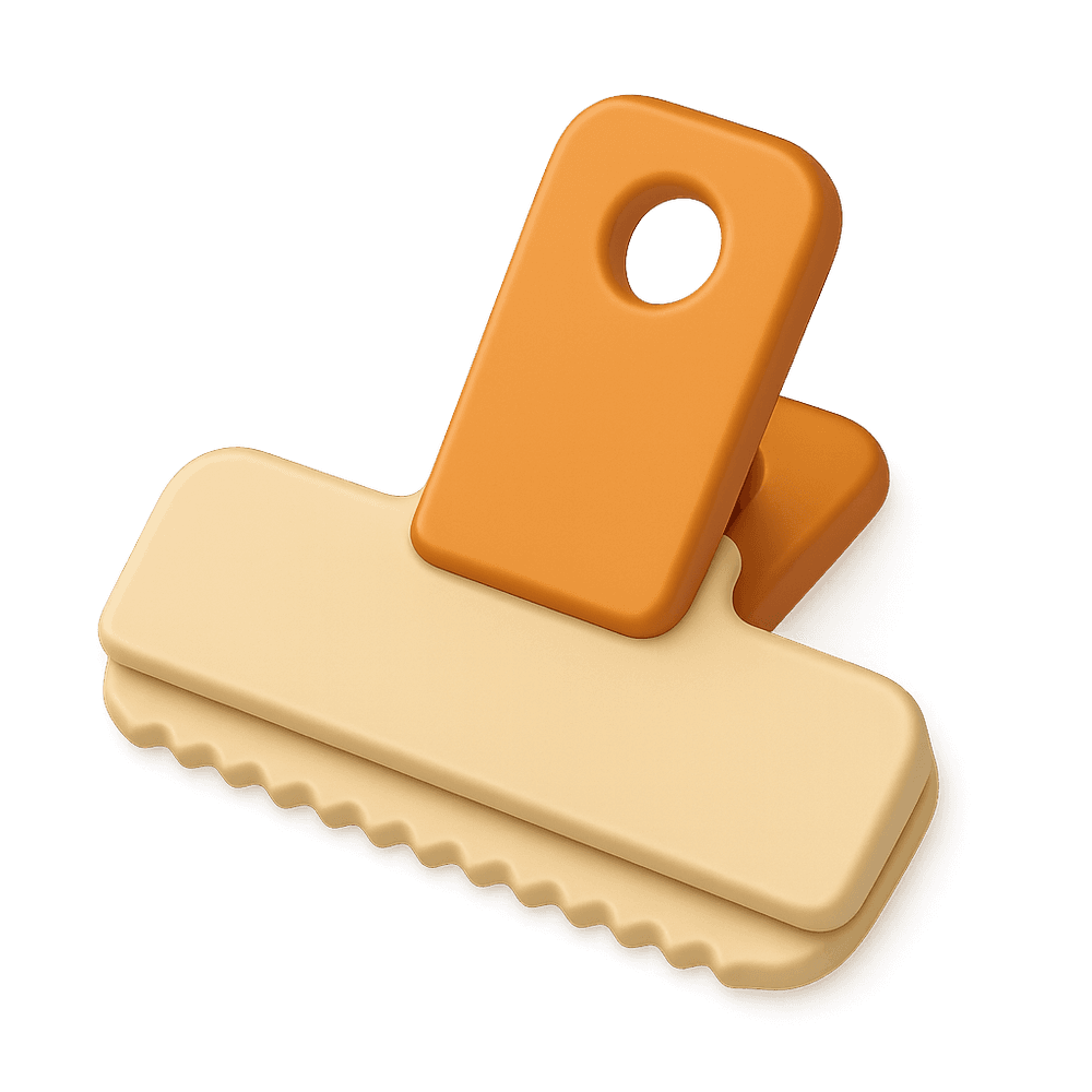A bag clip is a small, handy device used to seal open bags of food or other items, keeping contents fresh and preventing spills. It is commonly used in kitchens to reseal snack, chip, or bread bags.