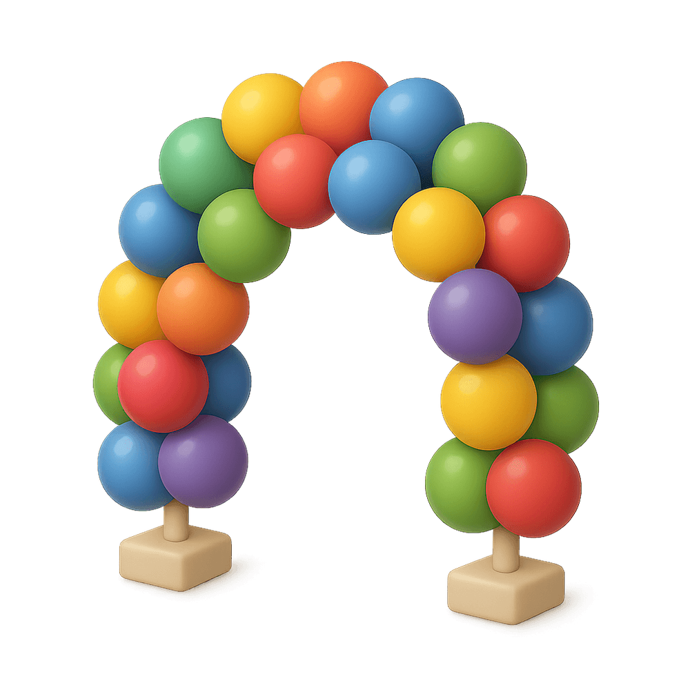 A balloon arch is a decorative structure made by arranging balloons in an arch shape, often used to enhance the atmosphere at parties, celebrations, and events. It serves as a festive entrance or backdrop, adding color and excitement to entertainment and leisure settings.