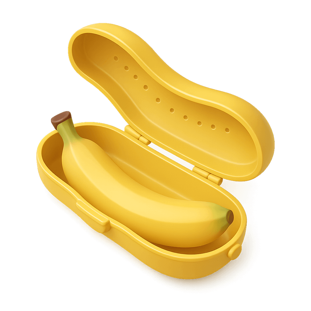 A Banana Keeper is a protective container designed to store and transport bananas without bruising or squishing them. Its shape fits a single banana, keeping it fresh and intact in lunchboxes, bags, or while traveling.