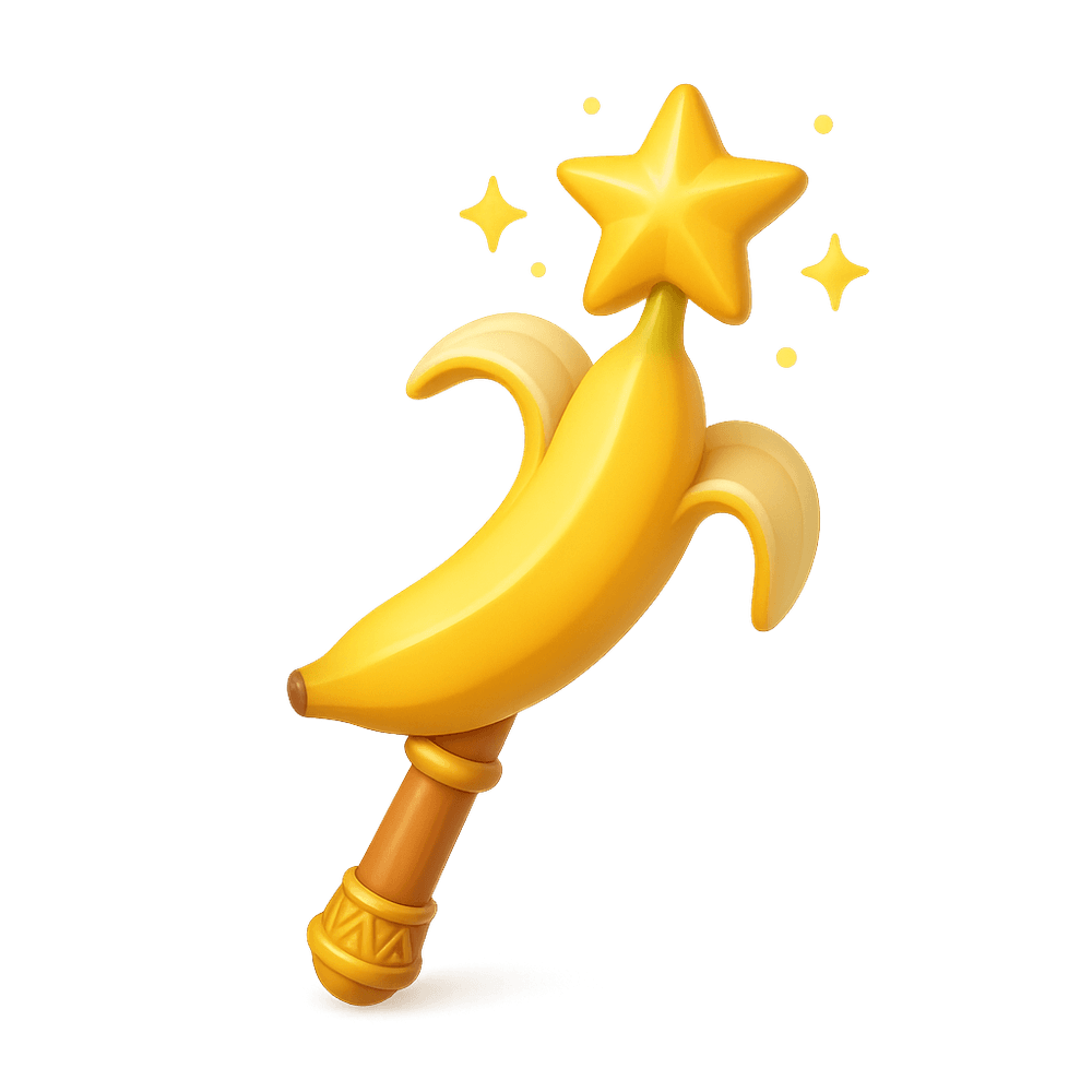 A whimsical scepter shaped like a banana, imbued with magical powers and often wielded by imaginative rulers or wizards in fantastical realms. Its appearance inspires both laughter and awe, making it a symbol of playful authority and creativity.