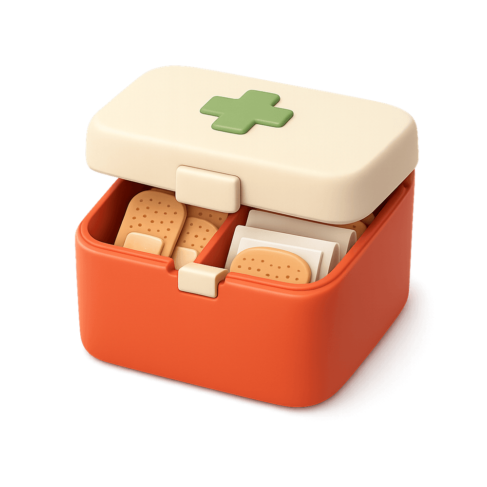 A bandage box is a small container designed to store and organize adhesive bandages and other minor first aid supplies, making them easily accessible for everyday cuts and scrapes.