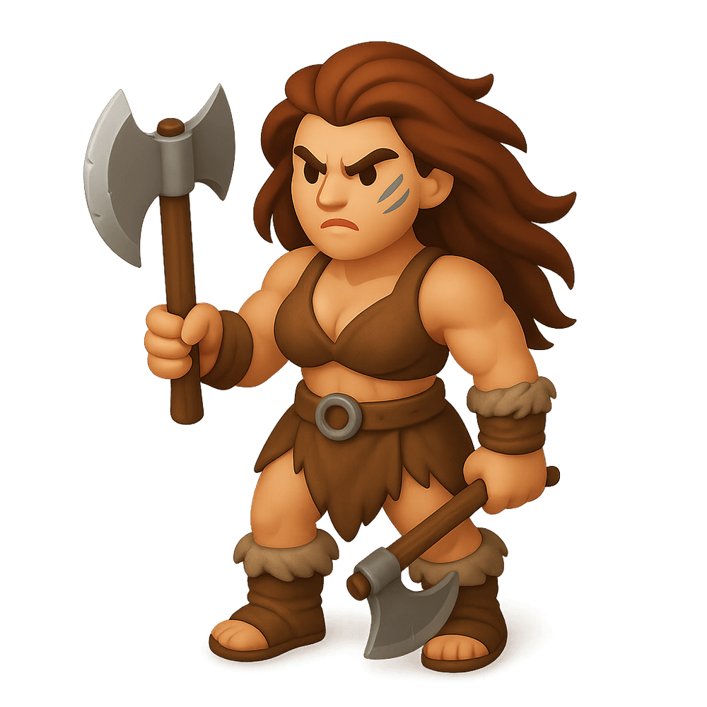 A fierce and powerful female warrior from a fantasy world, known for her strength, bravery, and untamed spirit. Often depicted wielding weapons and wearing rugged armor or furs, she embodies the wild and adventurous side of imagination.