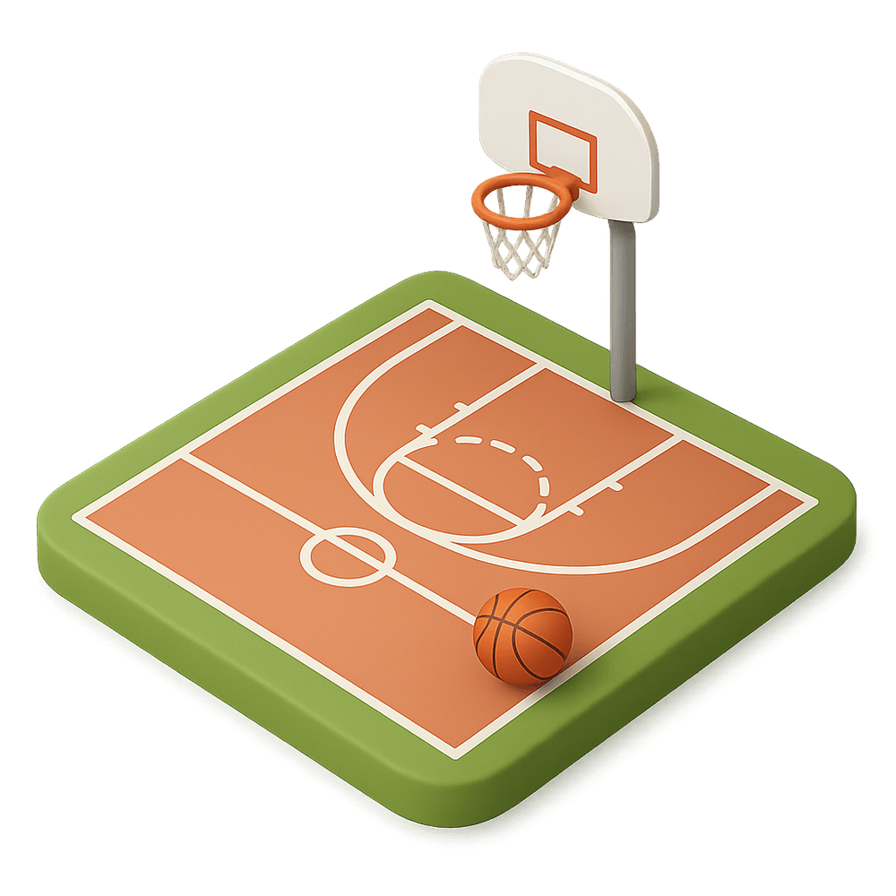 A basketball court is a marked, flat surface designed for playing basketball, featuring hoops at each end and specific boundary lines. It is commonly found in schools, parks, and sports centers, and is used for both recreational and competitive games.