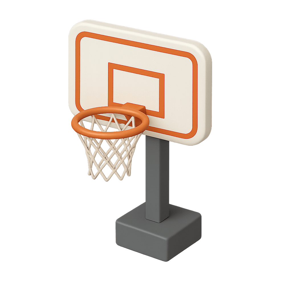 A basketball hoop is a circular metal ring with a net attached, mounted on a backboard. It is used as the target in the sport of basketball, where players aim to shoot a ball through the hoop to score points.