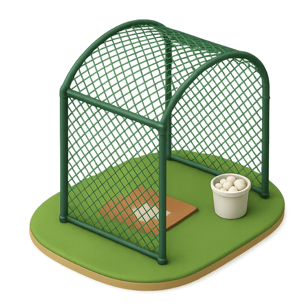 A batting cage is an enclosed area designed for baseball or softball practice, where players can safely hit pitched balls. It is commonly used for training, skill development, and recreational play.