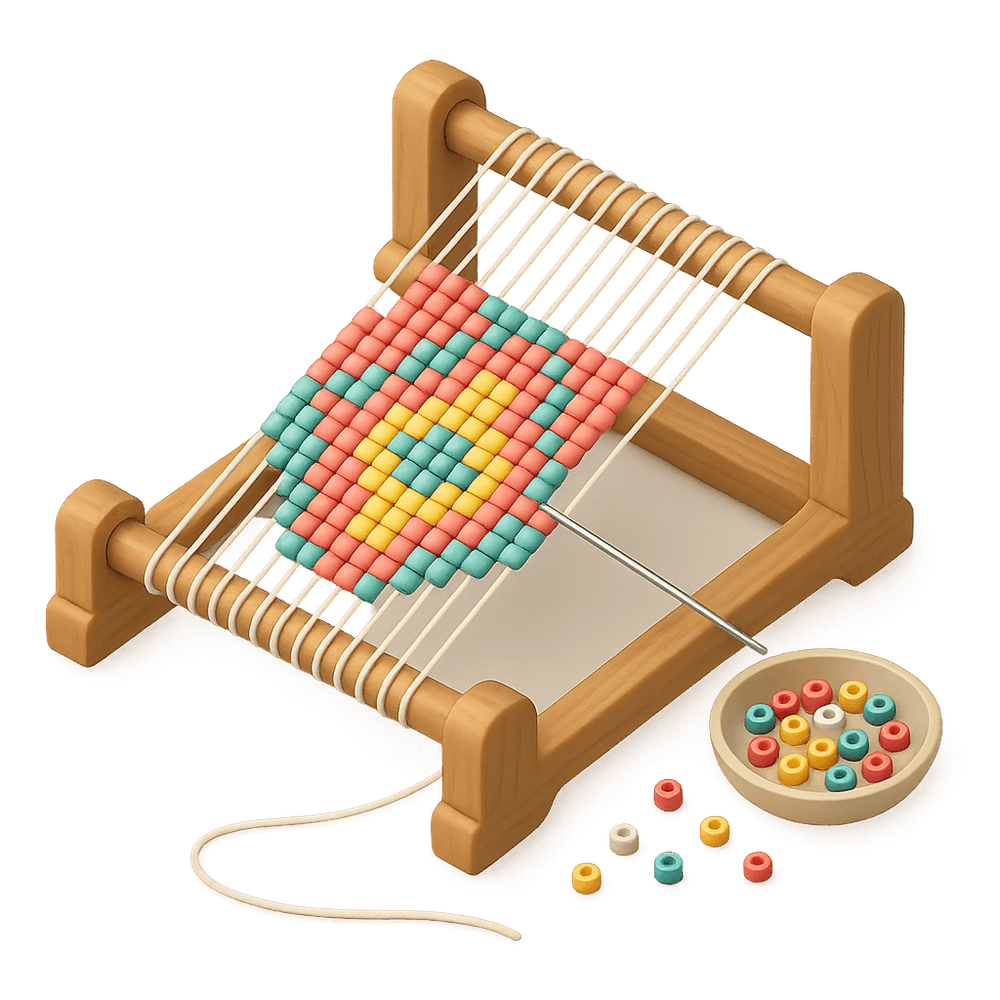 A bead loom is a crafting tool used to weave beads into patterns and designs, commonly for making jewelry, belts, and decorative items. It allows for precise alignment and intricate beadwork, making it popular among hobbyists and artisans.