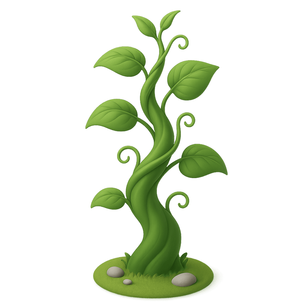 A beanstalk is a tall, fast-growing plant stem, often associated with climbing beans. In folklore, it is famously known for its magical, towering growth in the story 'Jack and the Beanstalk.'