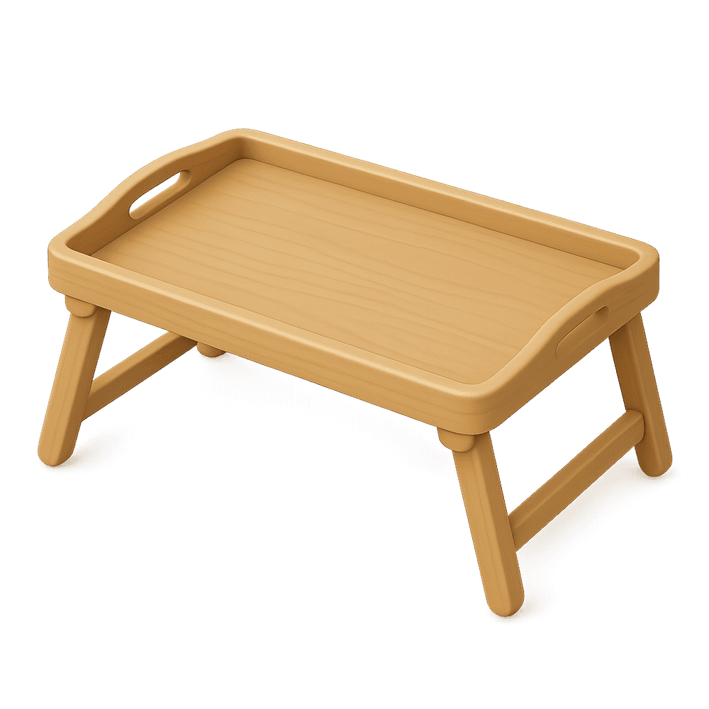 A bed tray is a portable, flat surface with raised edges and often foldable legs, designed for serving food, drinks, or holding items while in bed. It provides convenience for eating, reading, or working comfortably from bed.
