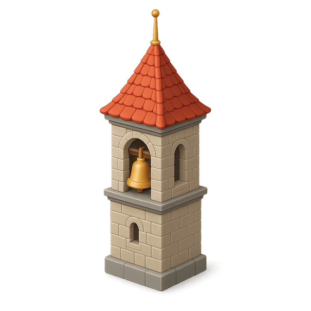 A belltower is a tall structure, often part of a church or civic building, designed to house bells. It serves both architectural and functional purposes, marking time or signaling events to the surrounding community.
