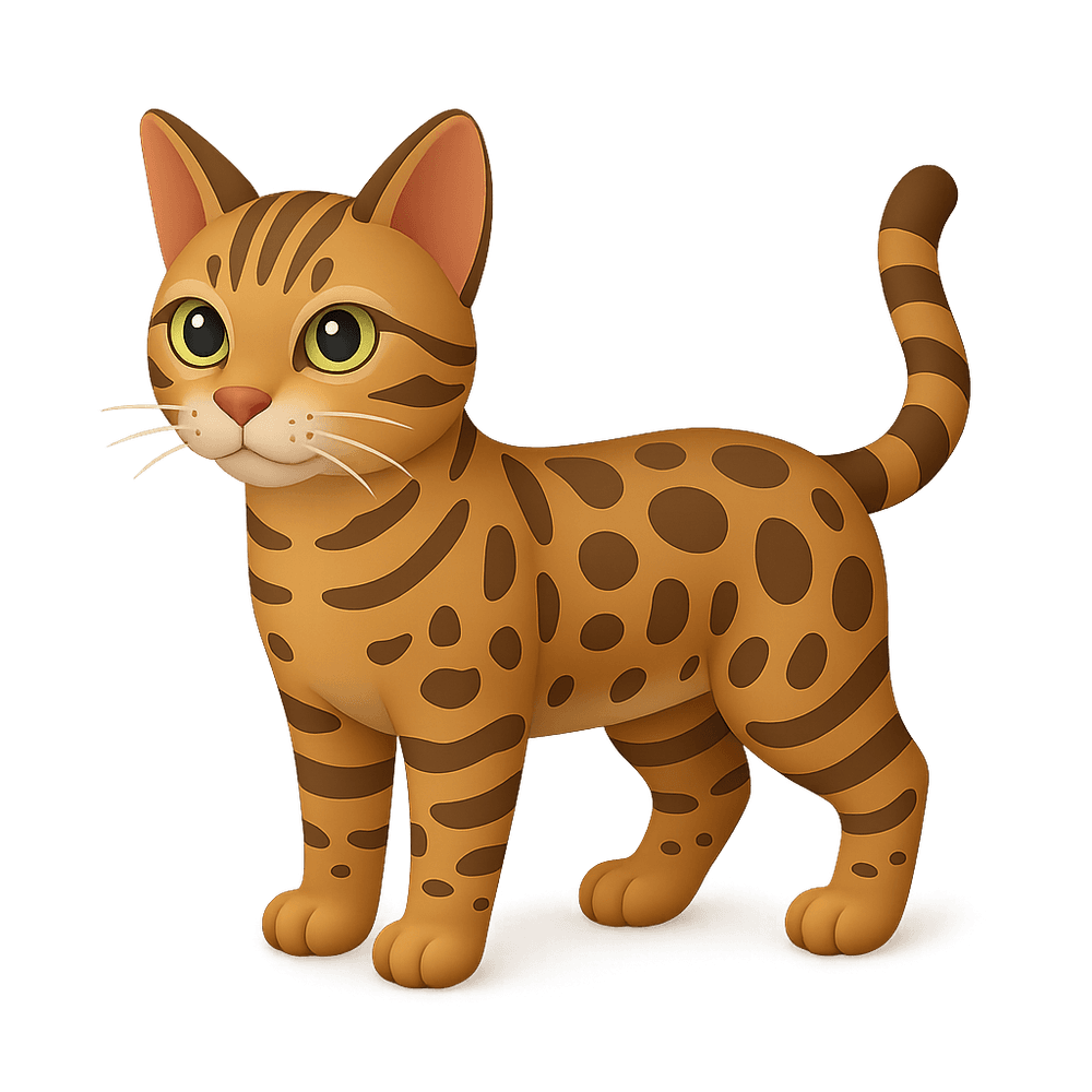 The Bengal Domestic Cat is a striking breed known for its wild appearance, featuring a sleek, muscular body and a distinctive spotted or marbled coat reminiscent of a leopard. Energetic, intelligent, and affectionate, Bengals are popular pets prized for their playful nature and unique beauty.