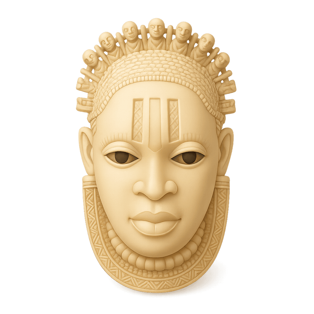 The Benin Ivory Mask is a ceremonial mask from the Kingdom of Benin, crafted from ivory and often depicting the face of a queen mother. It is a symbol of royal power and artistry in West African history, renowned for its intricate carvings and cultural significance.