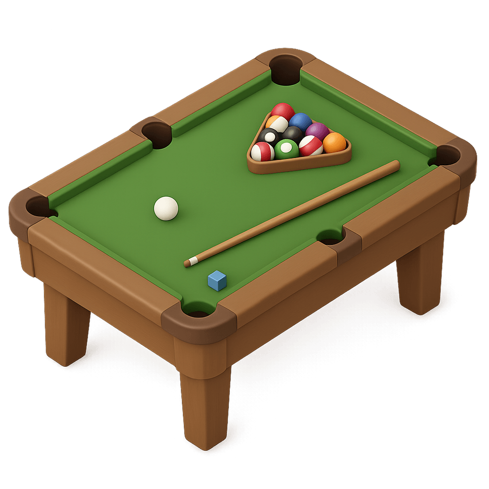 A billiards table is a flat, rectangular surface covered with cloth, used for cue sports such as pool, snooker, or carom billiards. It features pockets or cushions and is a central piece for social games and recreation.