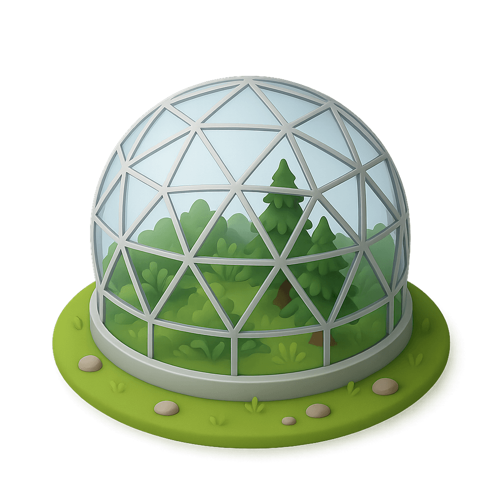 A Biosphere Dome is a large, enclosed structure designed to simulate and sustain a self-contained ecosystem, often used for research, education, or as a habitat prototype. It features controlled environments for plants, animals, and humans, demonstrating principles of sustainability and ecological balance.