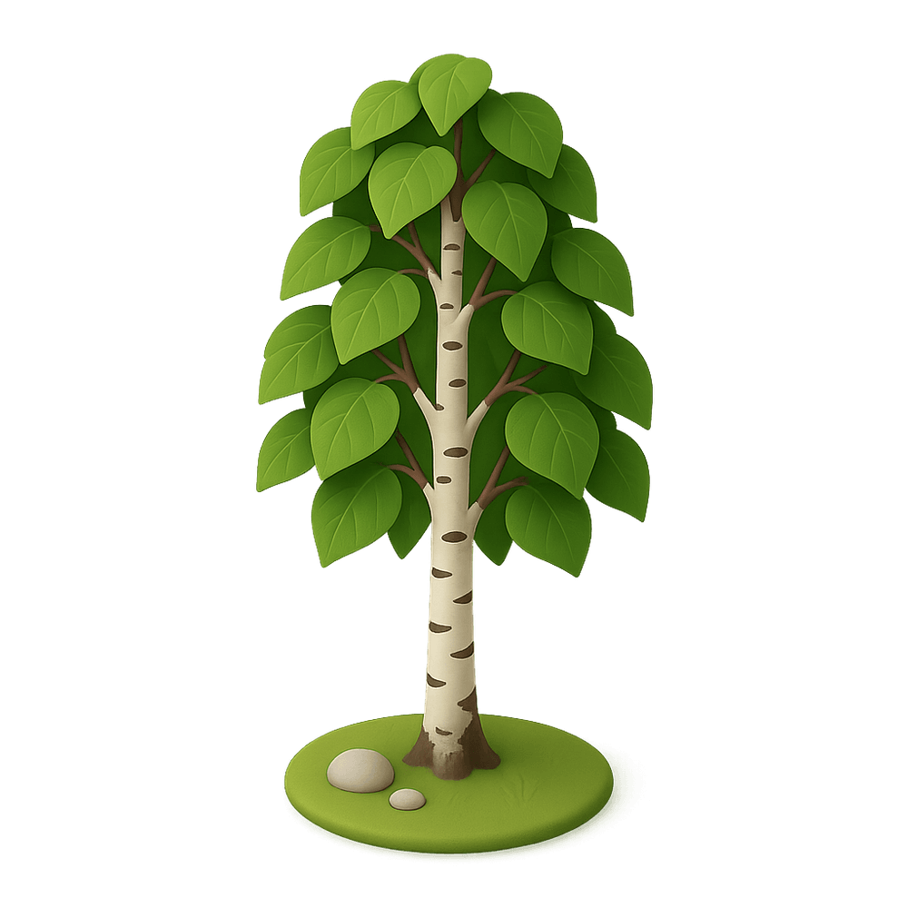 A birch tree is a slender, deciduous tree known for its distinctive white bark and delicate leaves. Commonly found in temperate climates, birch trees are valued for their beauty and ecological importance in forests and landscapes.