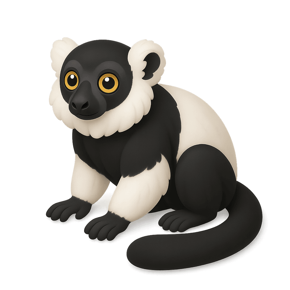 The Black-And-White Ruffed Lemur is a striking primate native to Madagascar, known for its distinctive black and white fur and loud vocalizations. It is an arboreal species that plays a vital role in its ecosystem as a pollinator and seed disperser. This lemur is critically endangered due to habitat loss and hunting.