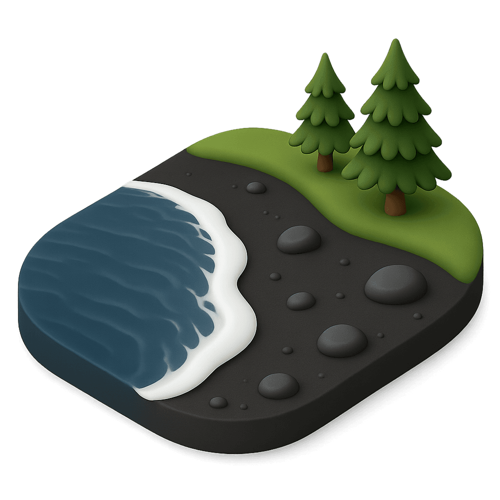 A Black Sand Beach is a striking natural shoreline where the sand is composed of dark volcanic minerals, creating a dramatic contrast with the ocean. These unique beaches are often found in volcanic regions and are popular destinations for sightseeing and photography.