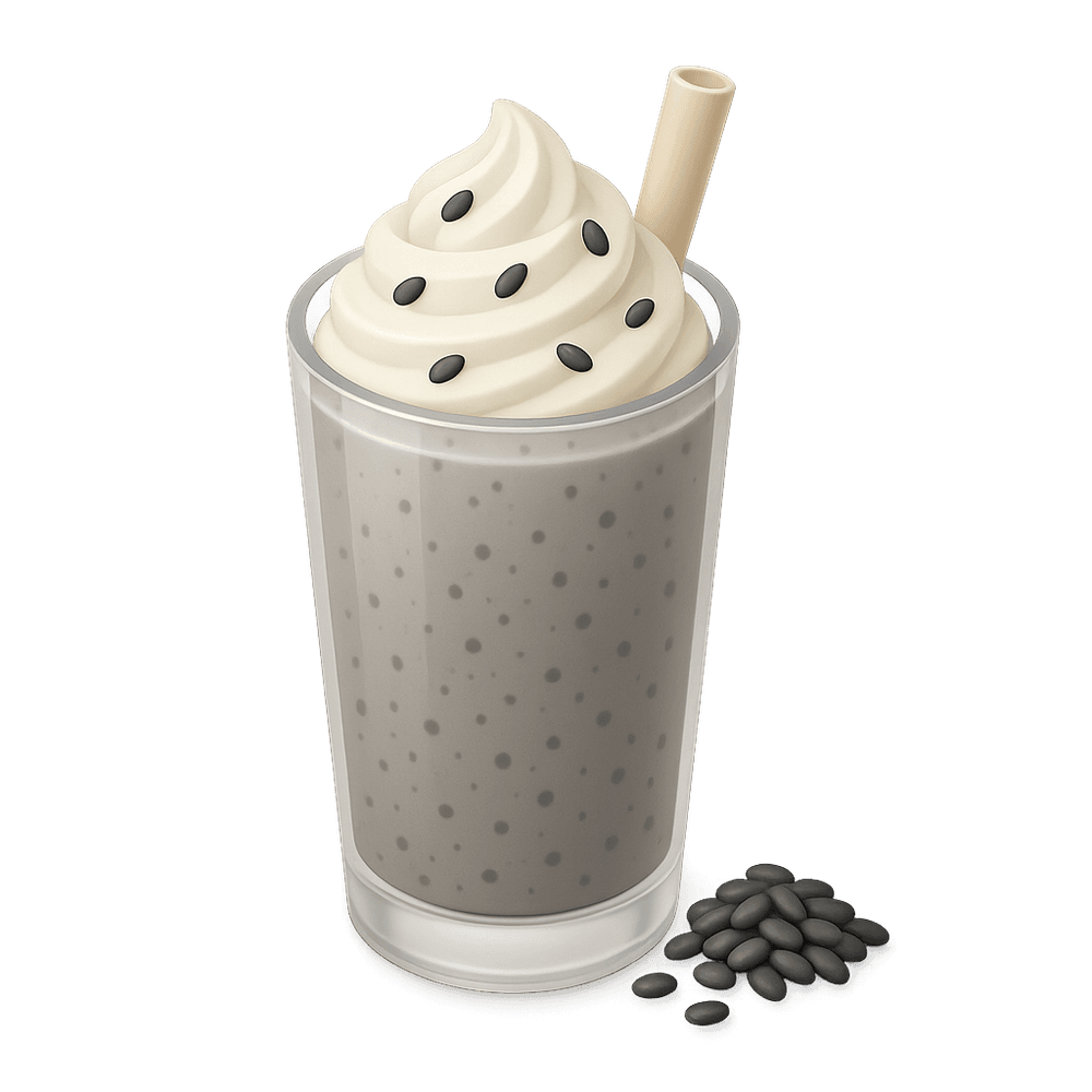 A creamy and nutty beverage made by blending black sesame seeds with milk and sweeteners, resulting in a unique, rich, and slightly earthy milkshake. Popular in Asian cuisine, it offers a distinctive flavor and smooth texture.
