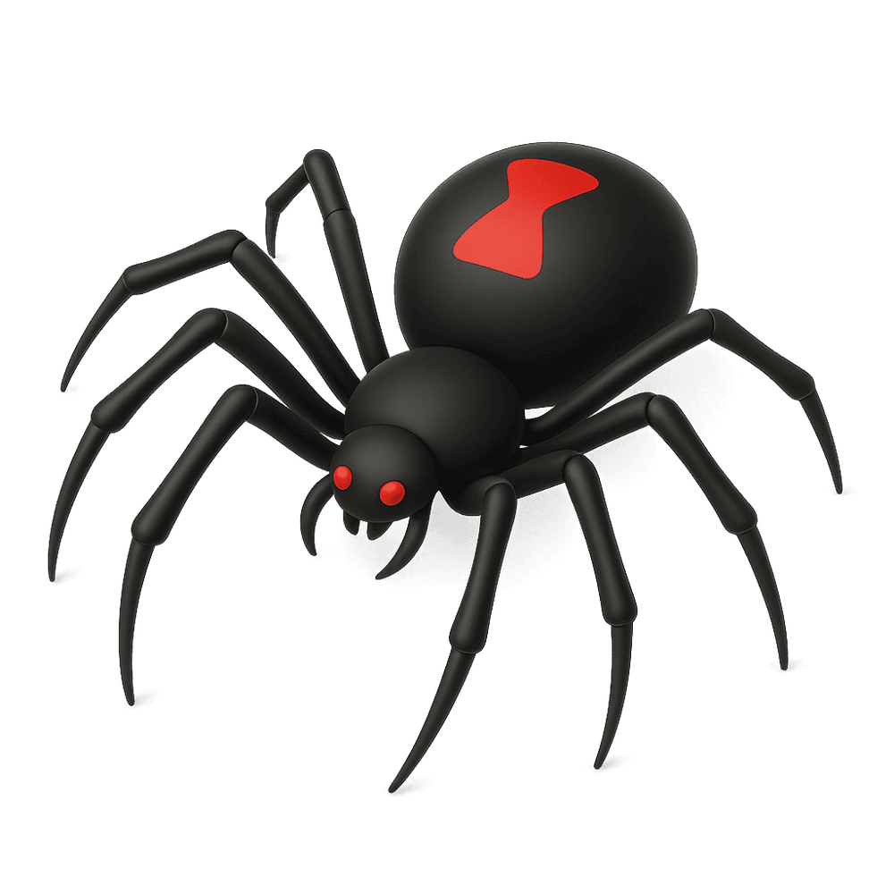 The Black Widow Spider is a venomous arachnid known for its shiny black body and distinctive red hourglass marking. It is found in temperate regions and is recognized for its potent bite.