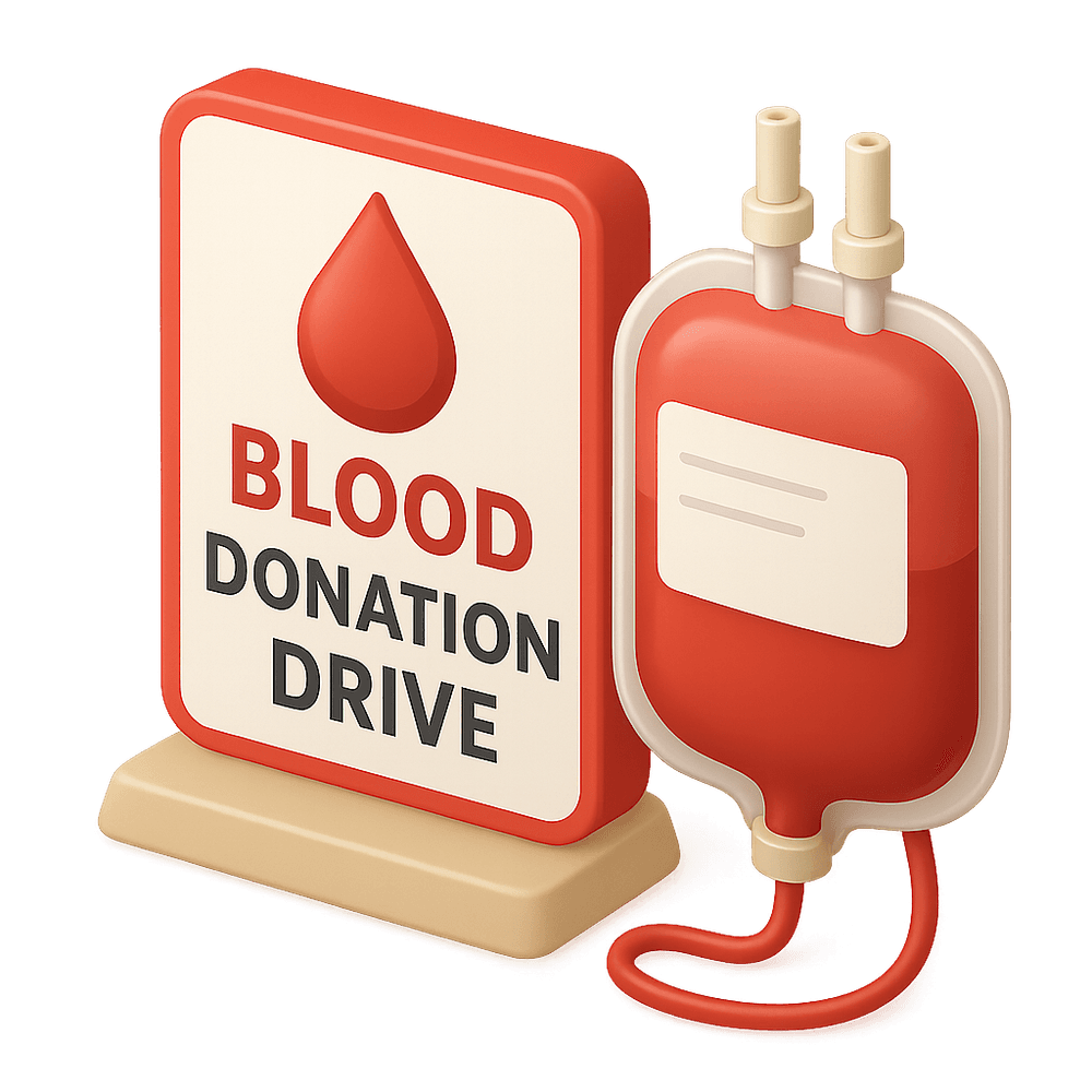 A Blood Donation Drive is an organized event where individuals voluntarily donate blood to be collected, processed, and used for medical purposes, such as surgeries, emergencies, or for patients with certain illnesses. These drives are often held in public spaces and are essential for maintaining blood supplies in hospitals and clinics.