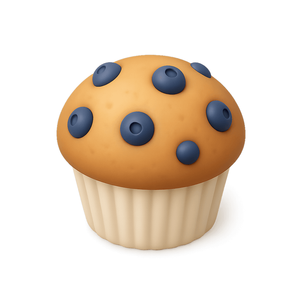 A blueberry muffin is a sweet, baked good made with flour, sugar, eggs, and fresh or dried blueberries. It is commonly enjoyed as a breakfast item or snack, known for its moist texture and fruity flavor.