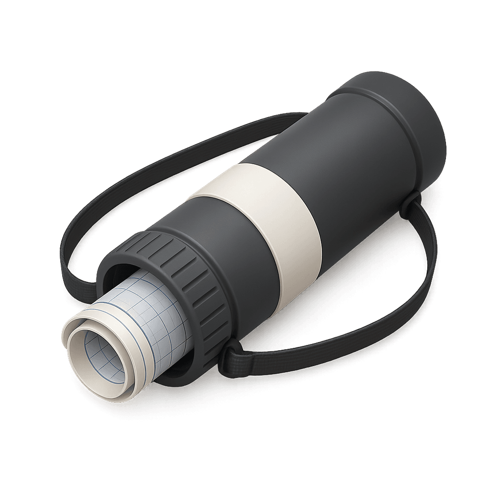 A cylindrical container designed to safely store, transport, and protect large-format documents such as blueprints, maps, or posters, commonly used in architecture, engineering, and construction industries.