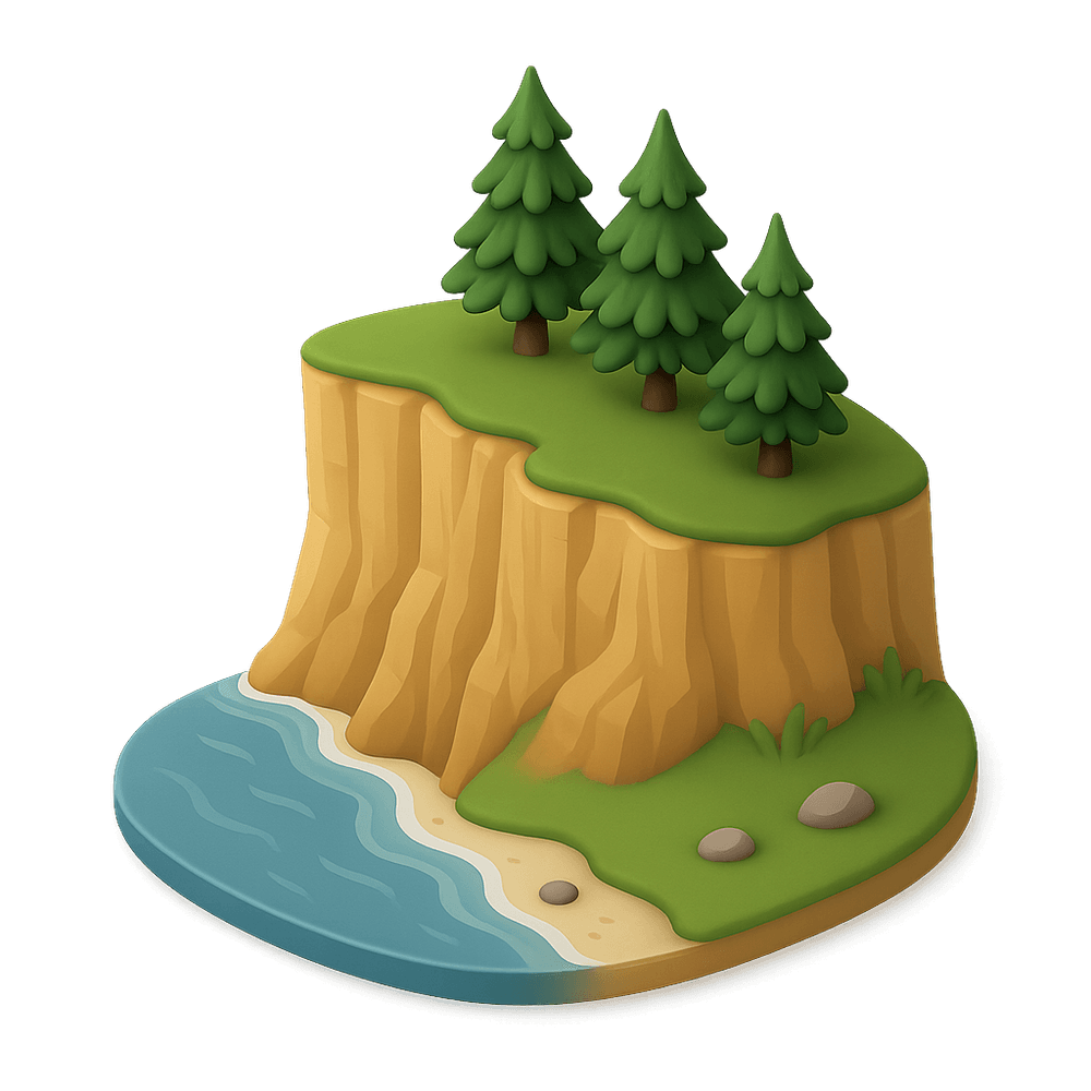 A bluff is a steep cliff, bank, or promontory, typically formed by river erosion or coastal processes. Bluffs are often found along rivers, lakes, or coastlines and provide scenic views of the surrounding landscape.