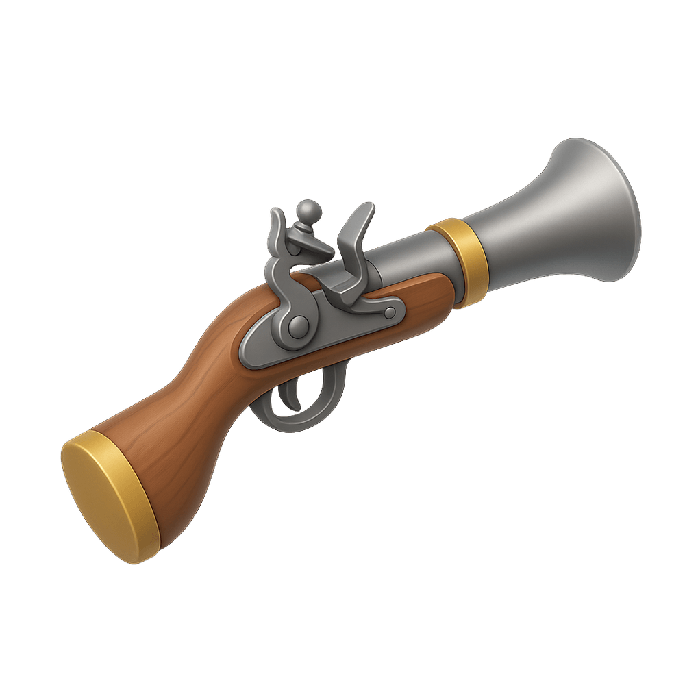 A blunderbuss is a historical firearm with a short, large-caliber barrel, flared at the muzzle, used from the 17th to 19th centuries. It was commonly used for close-range defense and is notable for its association with pirates and early military forces.