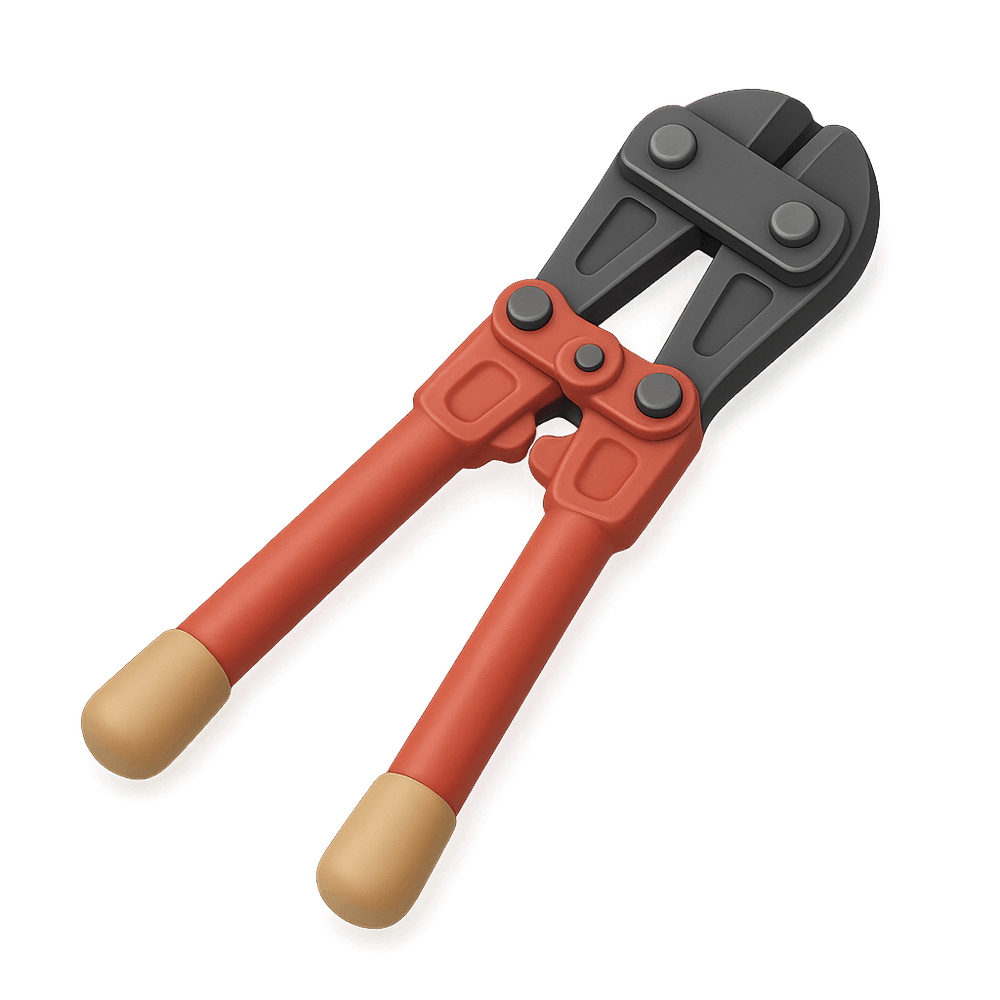 A bolt cutter is a heavy-duty hand tool designed to cut through metal bolts, chains, padlocks, and wire mesh. It features long handles and strong, sharp jaws for maximum leverage and cutting power, making it essential for construction, maintenance, and emergency situations.