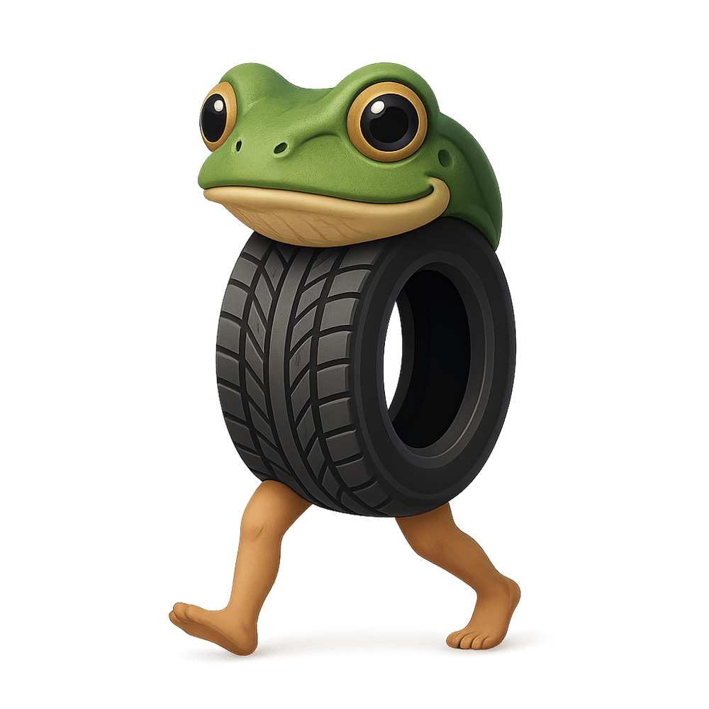 A popular "brainrot" character with a car tire instead of a torso, a frog's head and human legs.