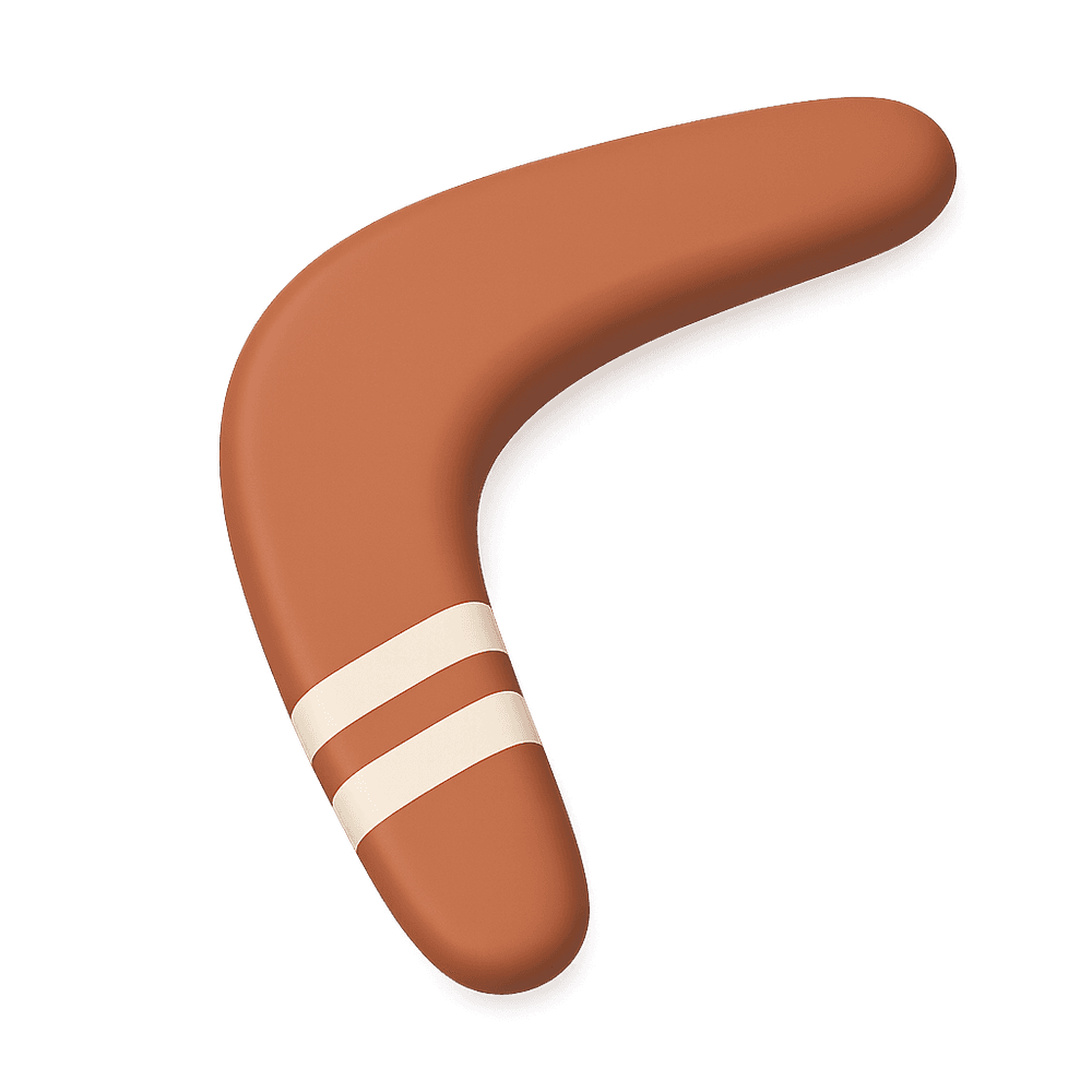 A boomerang is a curved, flat tool traditionally used for sport and recreation, known for its unique ability to return to the thrower when thrown correctly. It is often associated with skill-based outdoor activities and competitions.
