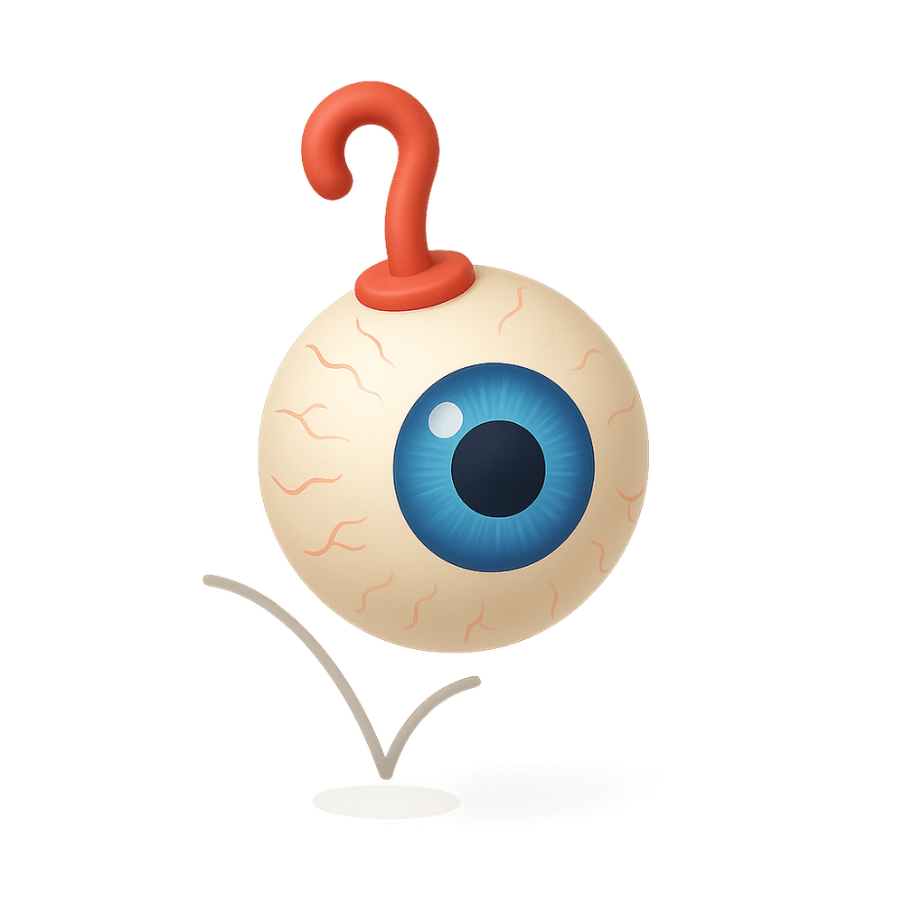 A playful, rubbery toy shaped like an eyeball that bounces when thrown. Popular as a novelty item for parties, pranks, or as a fun desk distraction.
