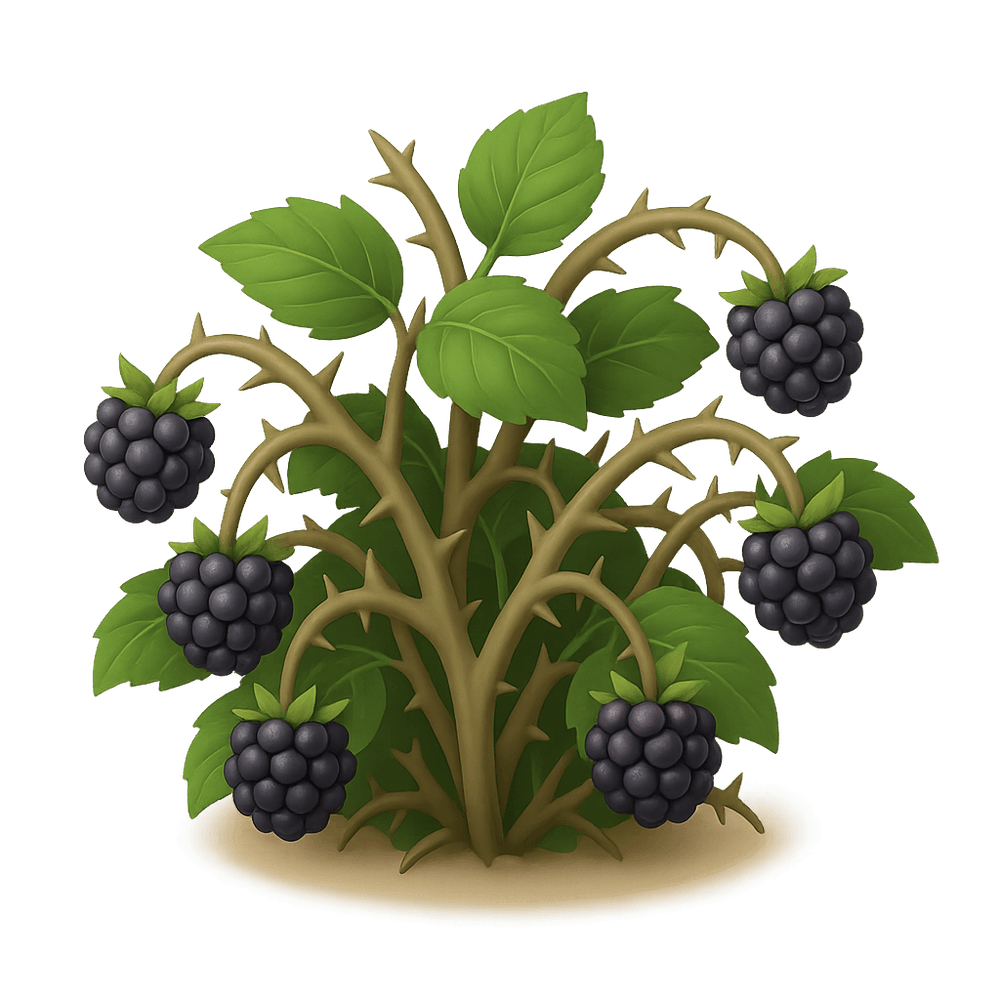 A bramble is a rough, tangled, prickly shrub, typically referring to blackberry or raspberry bushes. Commonly found in wild or overgrown areas, brambles provide food and shelter for wildlife and are known for their edible berries.