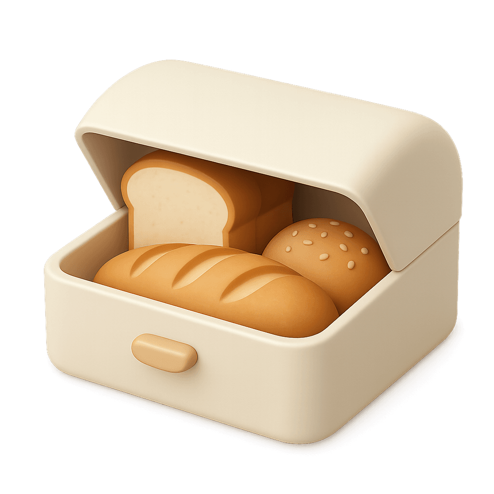 A bread box is a container designed to store bread and other baked goods, keeping them fresh by providing a controlled environment that limits exposure to air and moisture. Commonly found in kitchens, it helps organize countertops and prolongs the shelf life of bread.