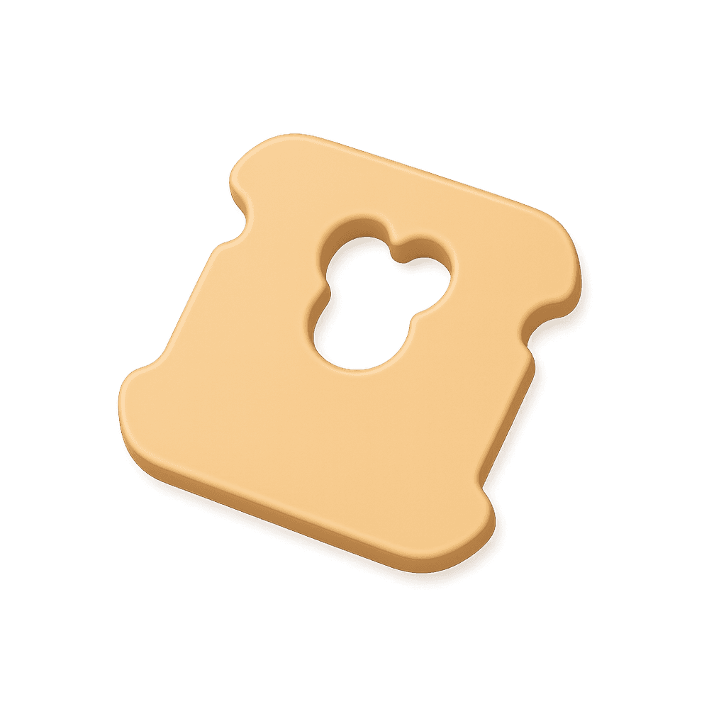 A small, flat plastic clip used to seal bags of bread and keep them fresh. Commonly found in households, it helps organize and preserve food.