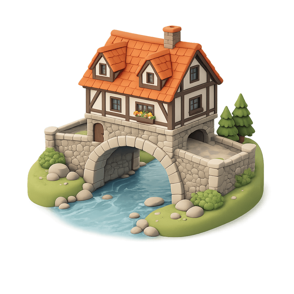 A unique house built over or incorporating a bridge, often serving as both a residence and a passageway. Bridge houses are notable architectural features found in various cities, blending functionality with historical or scenic value.